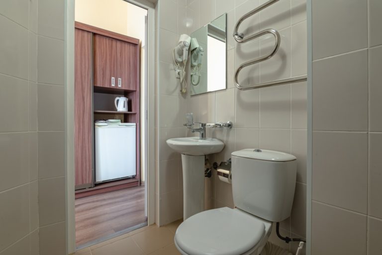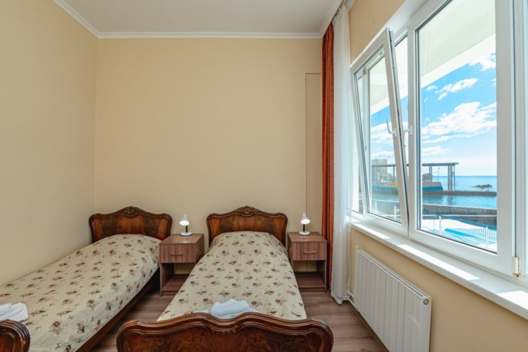 Площадь номера - 18 кв.м. 2 осн. места. 1 доп. место. Мебель: вешалка, зеркало, кровати односпальные, прикроватные тумбочки, стол, стулья, шкаф. Оборудование: кондиционер, телевизор, холодильник. Санузел: с душем, туалетные принадлежности. Сервис: смена полотенец, смена постельного белья, уборка номера.