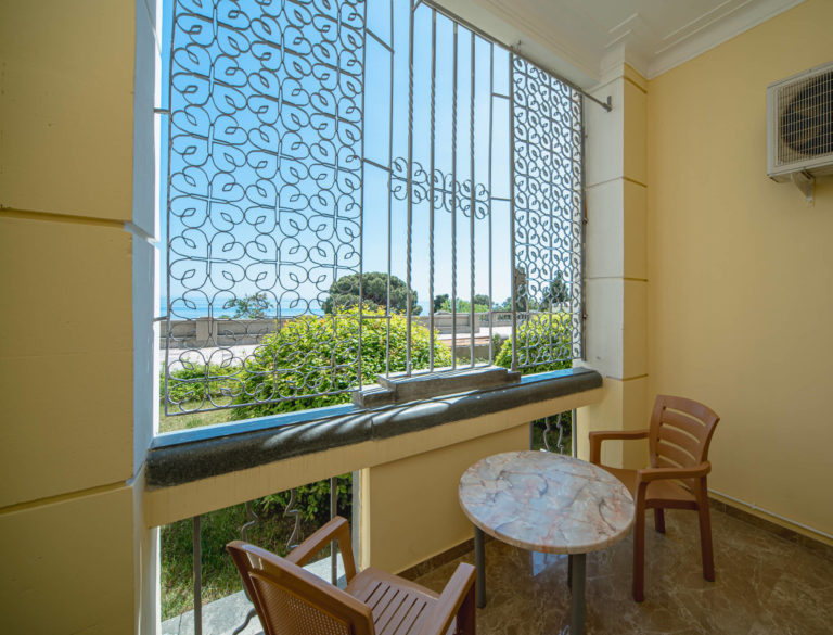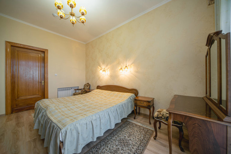 Площадь номера - 40 кв.м. 2 осн. места. 2 доп. места. Балкон. Мебель: вешалка, зеркало, кровать двуспальная, прикроватные тумбочки, стол, стулья, шкаф. Оборудование: кондиционер, телевизор, холодильник, чайный набор посуды, электрочайник. Санузел: с ванной, тапочки, туалетные принадлежности, фен, халат. Сервис: смена полотенец, смена постельного белья, уборка номера.